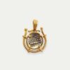 Handcrafted in a mix of solid 14k yellow gold and oxidized sterling silver, the piece beautifully blends historical gravitas with modern craftsmanship. The frame is sculpted in radiant gold, echoing the laurel wreaths and armor of the Hellenistic era, while the oxidized silver enhances the ancient feel of the coin itself.