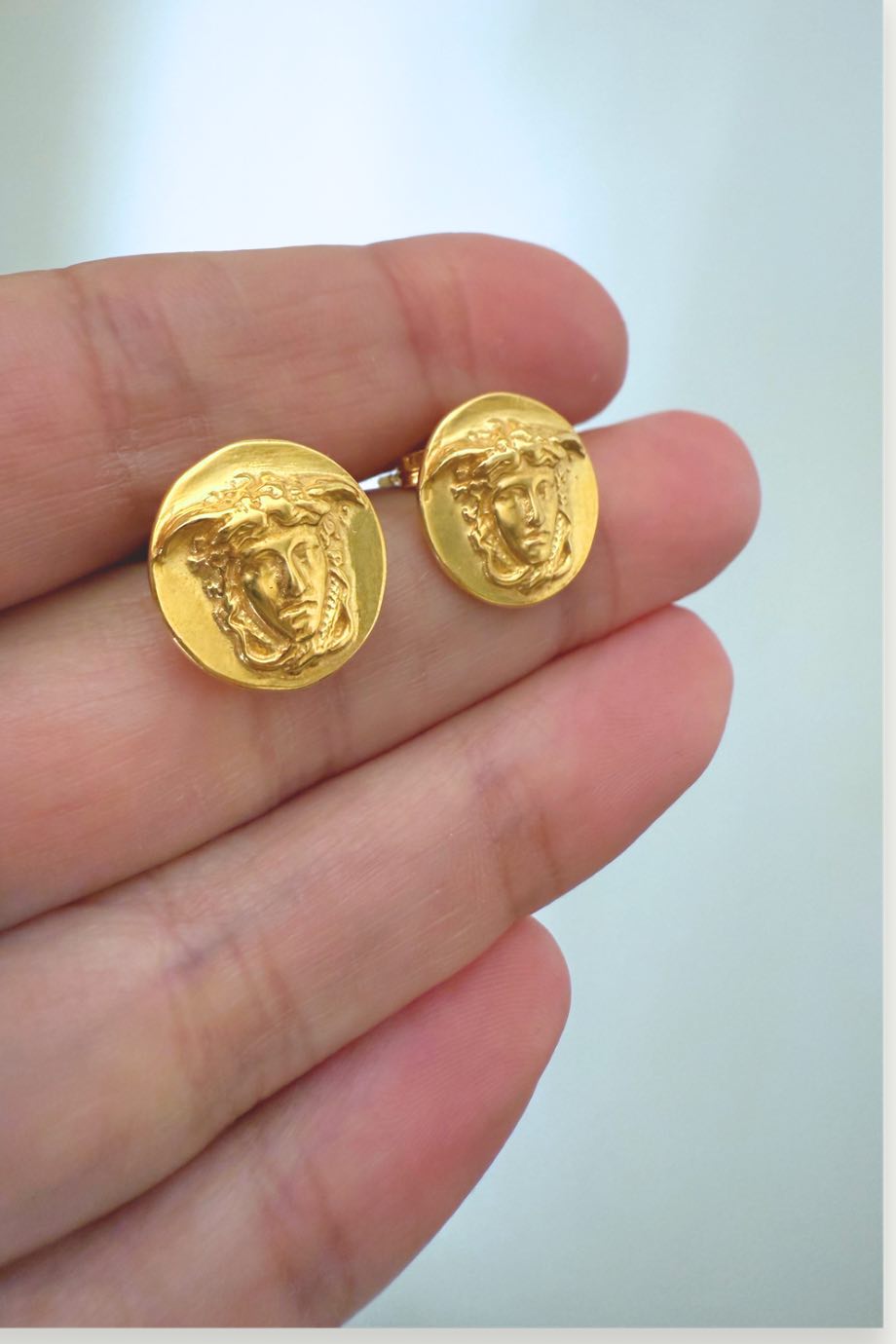 Bold and symbolic, these Medusa stud earrings are crafted from sterling silver 925 and coated with rich 18k gold plating. The design features a hand-sculpted Medusa head – a powerful emblem of strength, protection, and feminine energy in ancient Greek mythology.